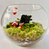 Handcrafted Christmas terrarium with live moss and tropical foliage plant
